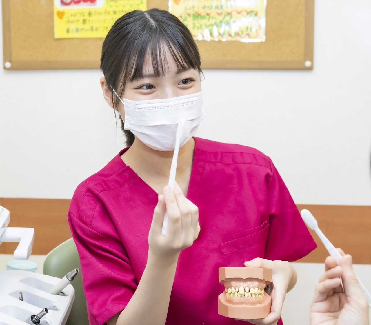 さらに当院では、患者さま一人ひとりに専任の歯科衛生士がおつきする「担当歯科衛生士制」を導入しています。処置を担当するのは、毎回同じ歯科衛生士です。ご家庭での歯磨きの方法、生活習慣の改善のアドバイスなども、専任の歯科衛生士が行います。同じ歯科衛生士がひとりの患者さまをずっと担当するため、お口の中の変化にも気づきやすく、よりきめ細やかなケアが可能です。